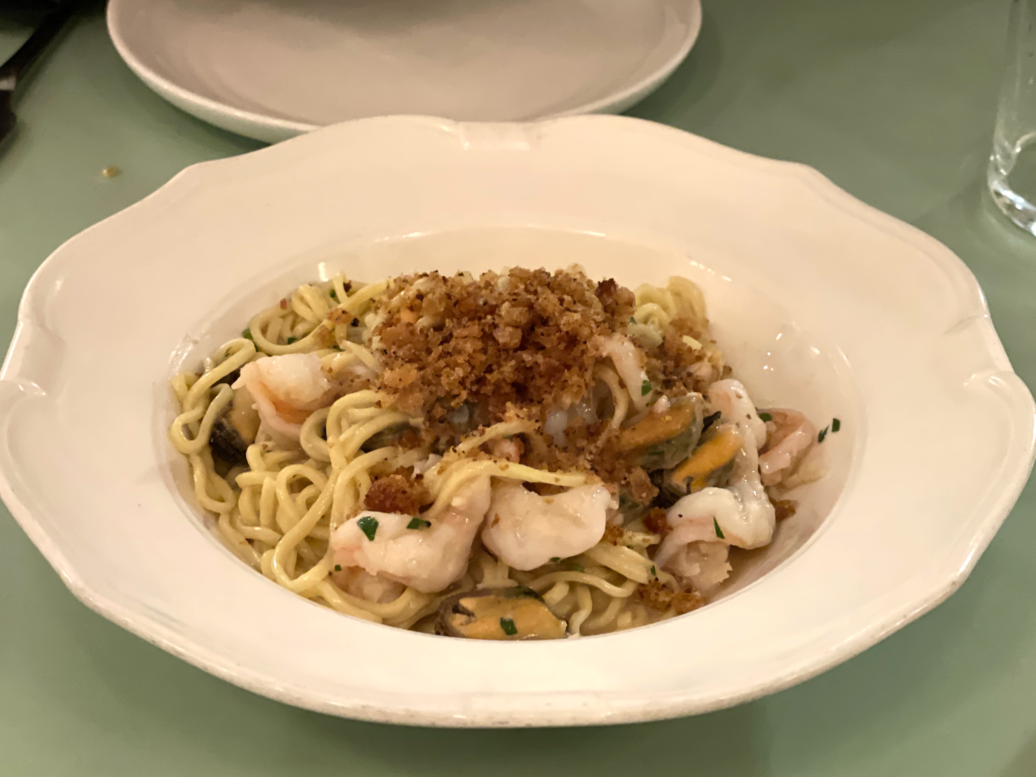Previous Next Published January 29, 2022 at 3596 × 2696 in Review: Lily On Clement. Tagliolini with Hopper Shrimp, Mussels, Clams, Bottarga in Bagna Cauda (3/10).